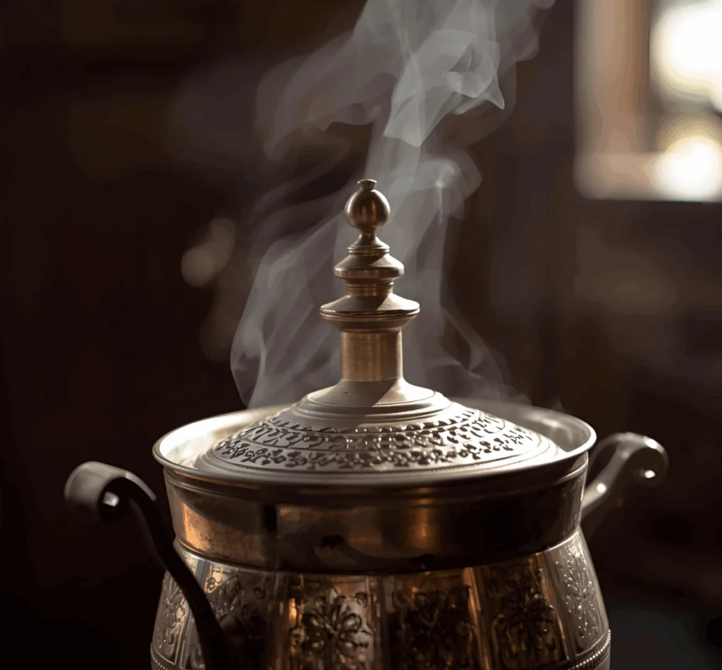 In Azerbaijan tea is brewed in a traditional metal teapot called “samovar”. Traditionally, it was used to heat water for making tea in Russia.