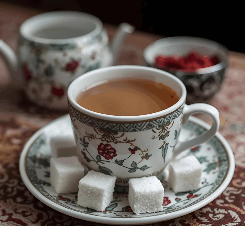 In Azeri culture, sugar cubes are served separately, allowing you to slightly dip them into the tea and eat it. They do not add and mix sugar directly into tea.