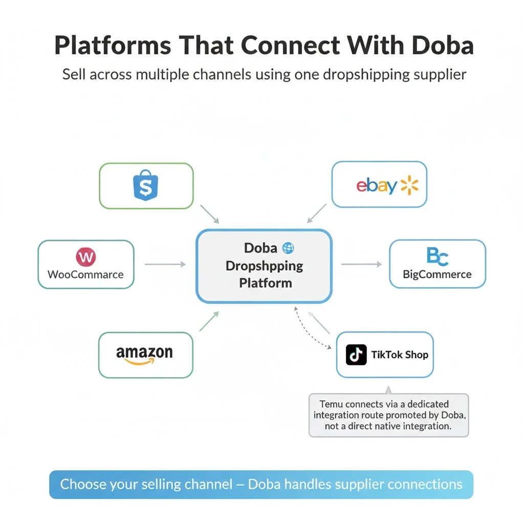 Doba integrates with several major ecommerce and marketplace platforms, which offers flexibility depending on the chosen selling channel.