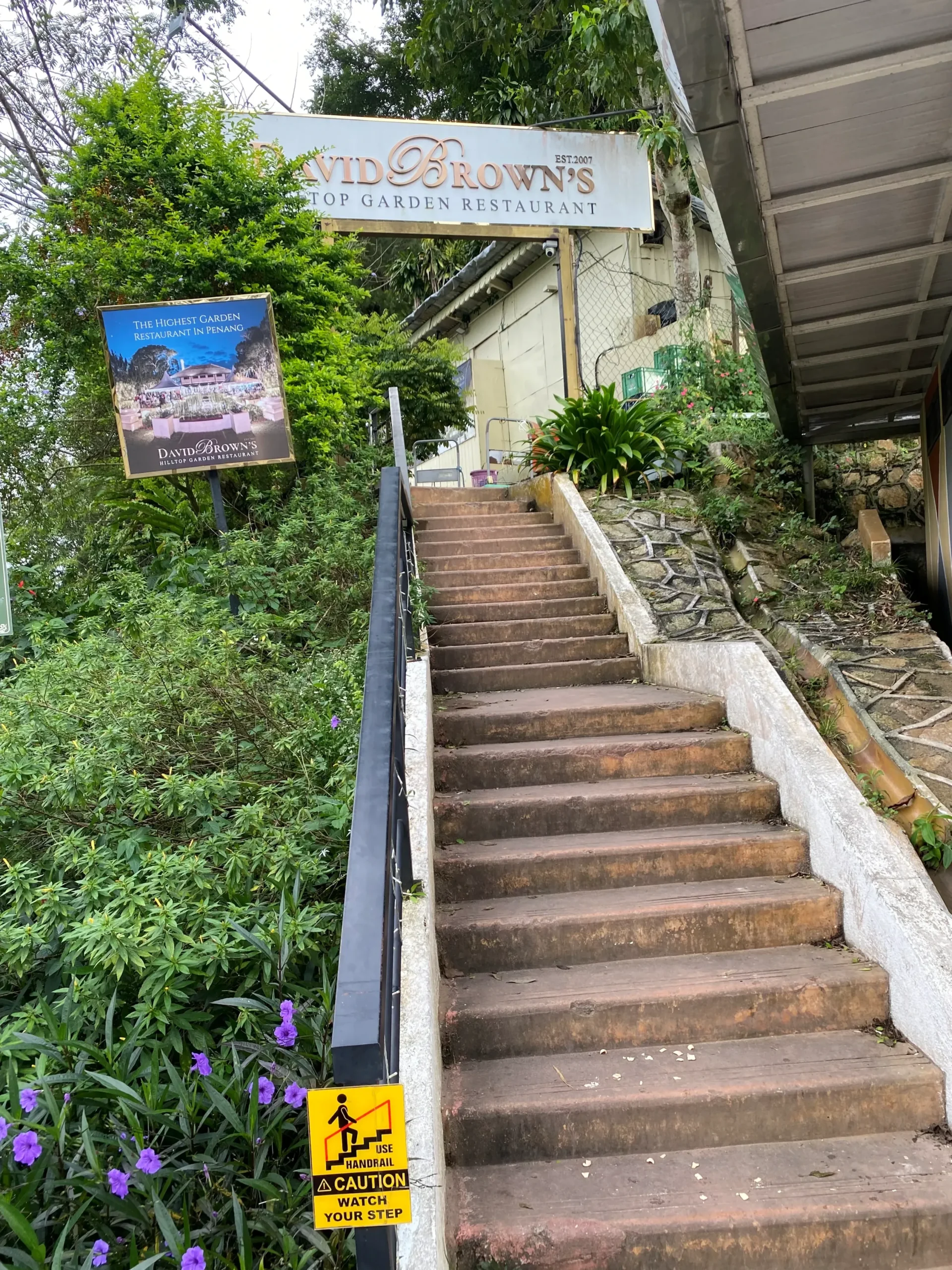Climbing up to David Brown’s, Penang Hill’s hilltop garden restaurant.