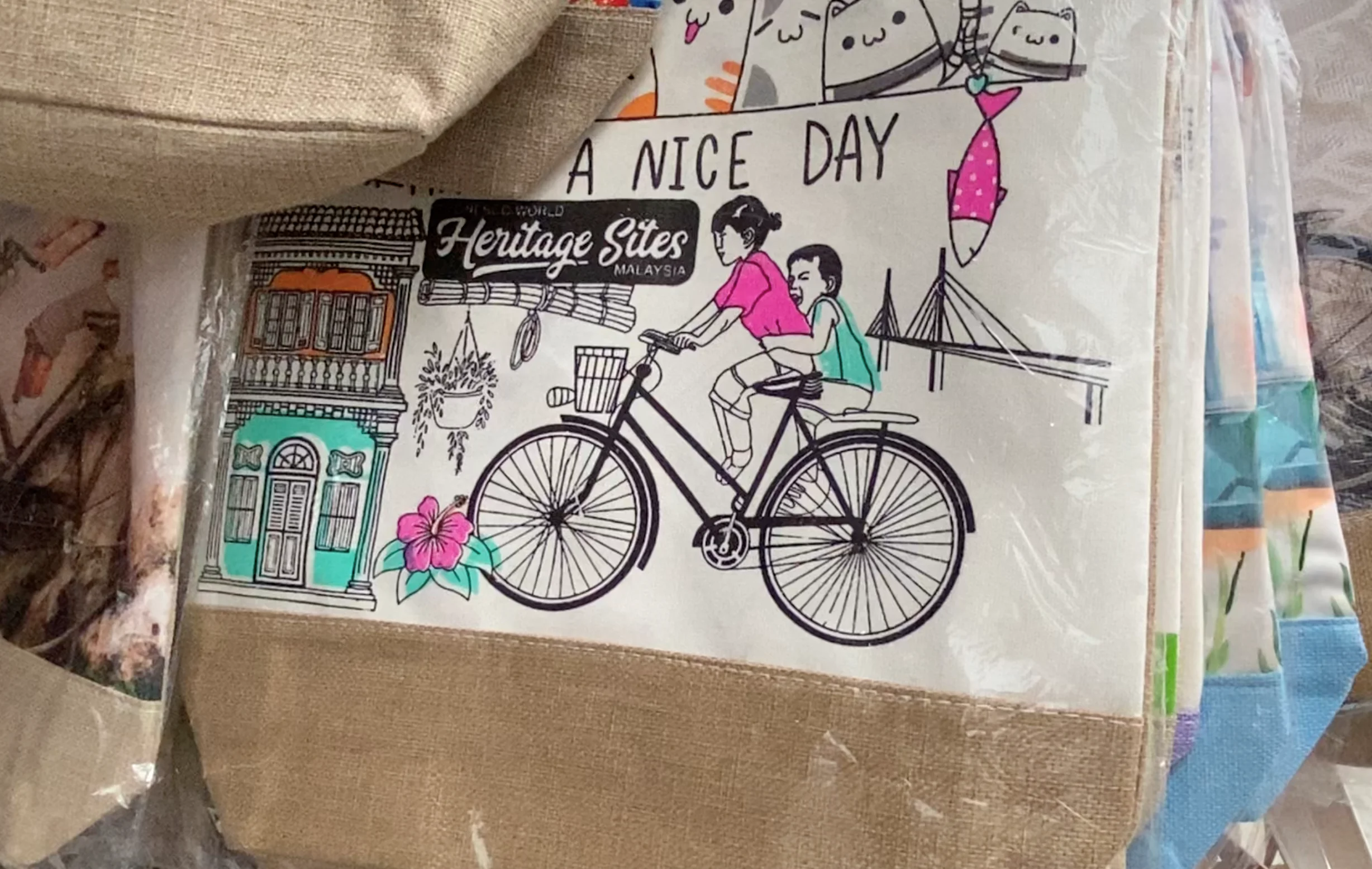 Cycling street‑art tote – a cute Penang souvenir inspired by George Town’s famous murals.