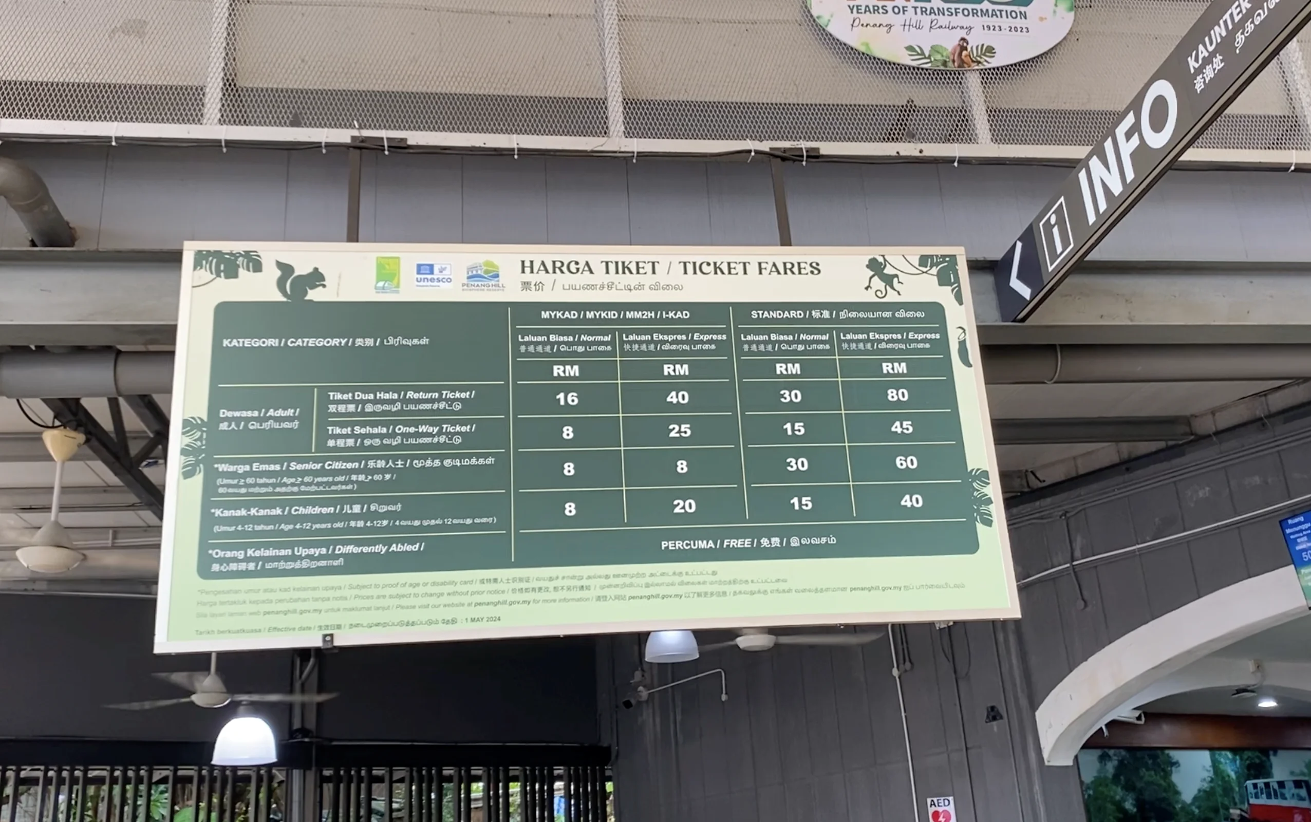 Ticket counter at Penang Hill – checking fares before the funicular ride up.