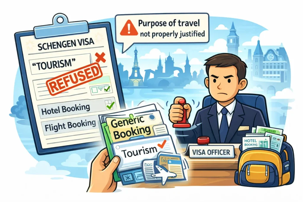 “Purpose of travel not properly justified” is another formal refusal reason across Schengen states. Many applicants submit generic bookings and a one‑line explanation like “tourism,” which can look unprepared or fabricated.