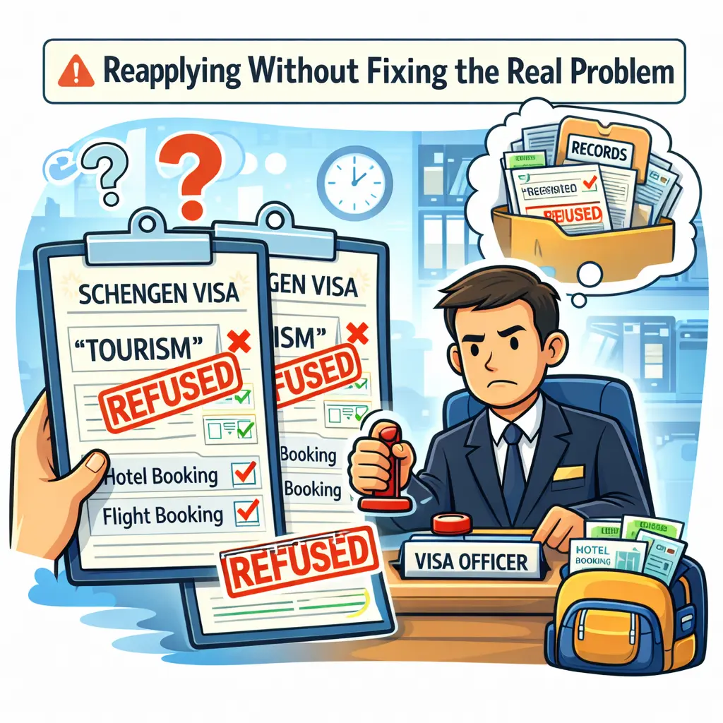 Many travellers respond to a refusal by quickly reapplying with the same documents and a different appointment date. Unfortunately, consulates keep records, and repeated identical applications usually receive the same outcome.