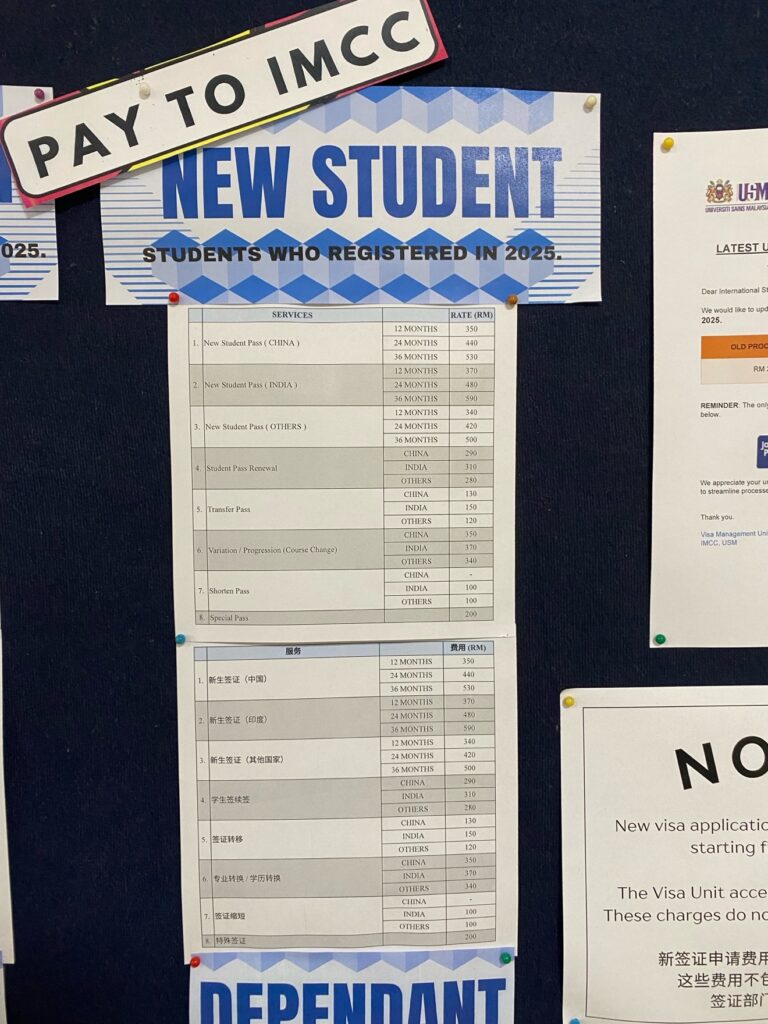 Notice board picture at Visa management unit at University Sains Malaysia.